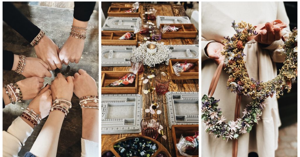 Ihr könnt direkt vor Ort loslegen, Euch Zubehör mit nach Hause nehmen oder fertige Stücke kaufen.